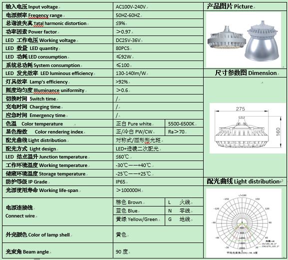 ◎专业配光设计,高品质光学PC透镜材料,满足不同高度厂房要求,亮度均匀。